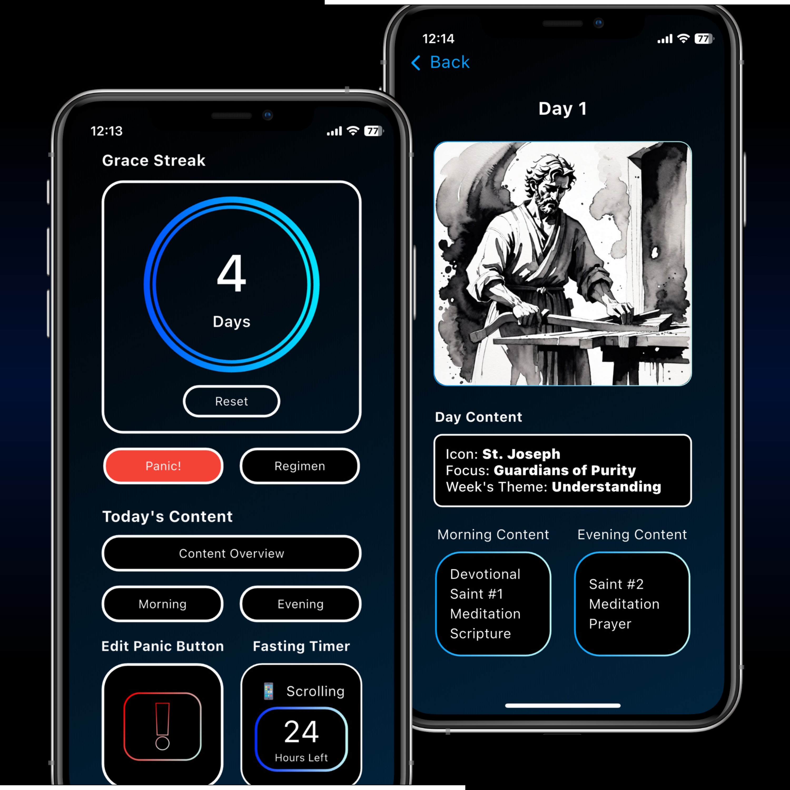 In an age where phones and apps have become playgrounds for the Devil, our mission is to help individuals kick bad habits & addictions such as pornography & phone addiction by re-engineering the addictive mechanisms of modern apps, making virtue, prayer, and church knowledge just as accessible.